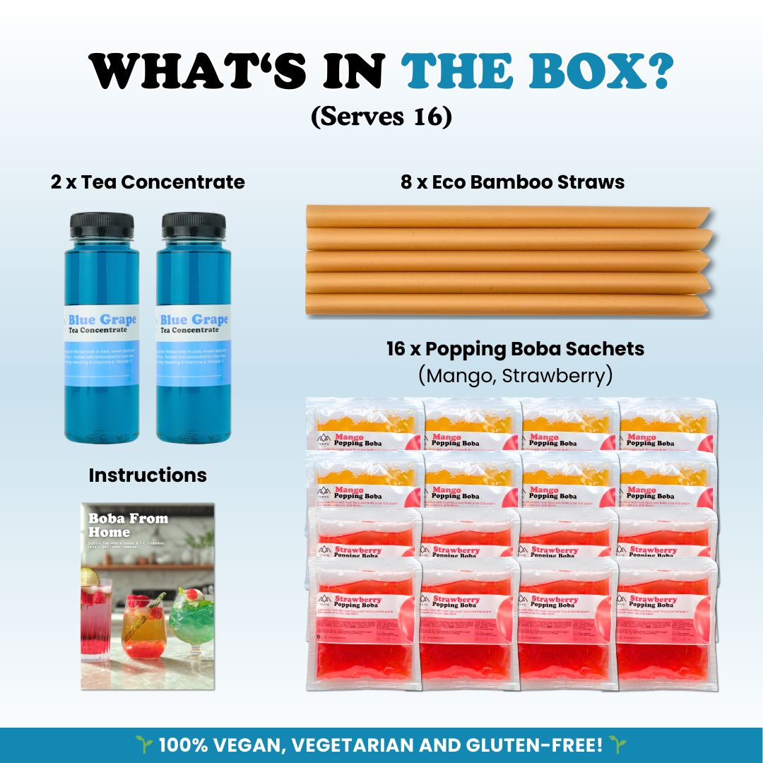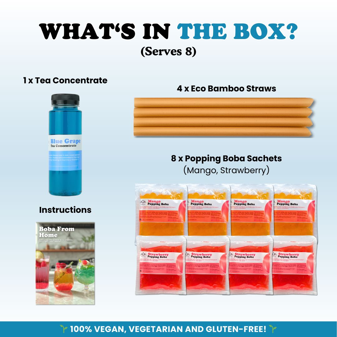 Bubble Tea Kit | Blue Grape Fruit Bubble Tea with Popping Boba