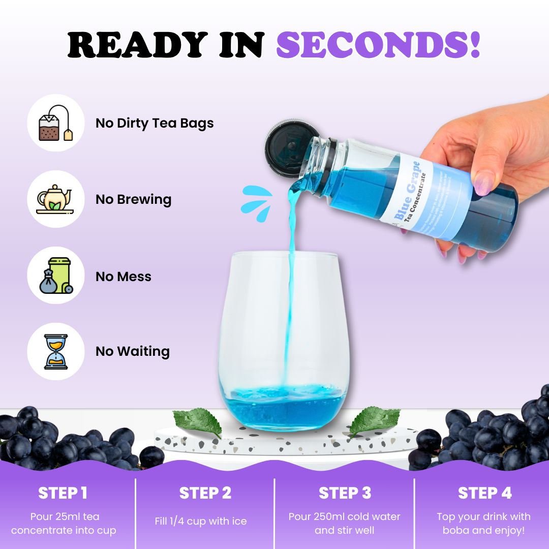 For all you bubble tea lovers, our best-selling Blue Grape boba tea syrup is for you!